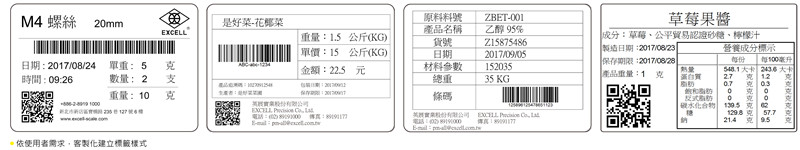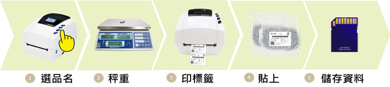 使用時(shí)免接電腦,節(jié)省成本與空間解決手寫品名與重量的困境品名、成分一次列印,快速提高客戶安心度可接條碼機(jī)、小鍵盤,快速掃描進(jìn)出貨自動(dòng)引入日期時(shí)間,記憶不會(huì)差錯(cuò)依使用者需求,客制化建立標(biāo)簽樣式精準(zhǔn)秤重、計(jì)數(shù)與貼標(biāo)的最佳組合USB 介面的條碼掃描槍(不限廠牌)支援 RS-232 通訊協(xié)定的其他設(shè)備(如電子秤、各類檢測(cè)設(shè)備、計(jì)數(shù)器等)操作方式:輕松選擇品名,快速貼上標(biāo)簽,儲(chǔ)存資料不漏失