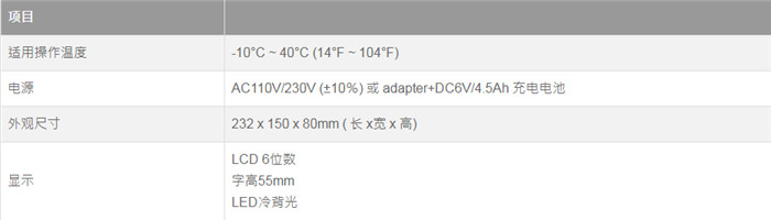 功能說(shuō)明外部顯示精度可達(dá) 1/3,0000,外殼 不銹鋼材質(zhì),IP68防水等級(jí):給您防潮、防水,以及防塵三重防護(hù),堅(jiān)固耐用交流式電源:采AC100V~240V (±10%) 電源設(shè)計(jì),不帶鉛酸電池可使用在防爆系統(tǒng)中加大型LCD顯示屏幕(175x70mm, 6位數(shù), 字高55mm), 具有冷色背光。具有計(jì)重及簡(jiǎn)易計(jì)數(shù)之功能。可顯示 “kg”、“g”、“t”、“l(fā)b” 等重量單位。具有自動(dòng)更正、自動(dòng)零點(diǎn)追蹤之功能。具有全量程扣重及預(yù)扣重之功能。具有校檢秤之功能。(HI、LO、OK)具有交直流兩用之功能。具有低電量警示及充放電保護(hù)之功能。內(nèi)置RS232可輕易讀取秤的數(shù)據(jù)或做簡(jiǎn)單的數(shù)據(jù)打印。傳感器激發(fā)電源:DC5V 5%,120mA( 可接8個(gè)350 Ω?jìng)鞲衅?。可搭配各種尺寸之秤臺(tái)與秤量,調(diào)配靈活度高。U 型支撐架可搭配各種尺寸之秤臺(tái)與秤量,調(diào)配靈活度高。規(guī)格說(shuō)明