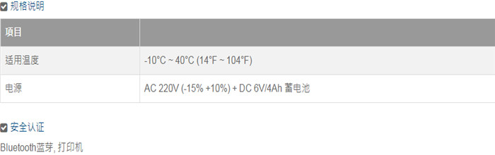自動校正功能、自動零點追蹤、低電力及充電狀態顯示。