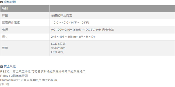 檢定分度數:nind=3000 ,外部顯示精度取決于搭配秤臺傳感器之精度